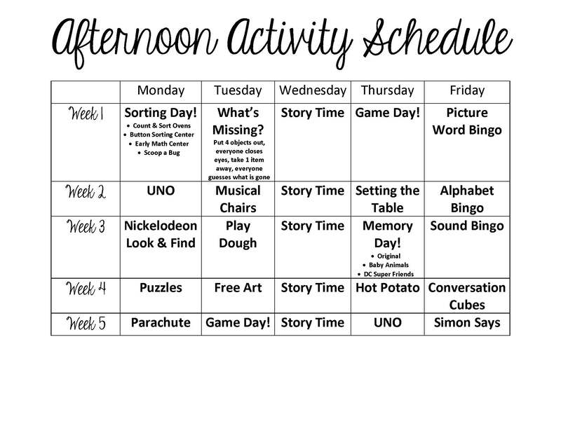 ALSD LEARNING CENTER DAILY SCHEDULE